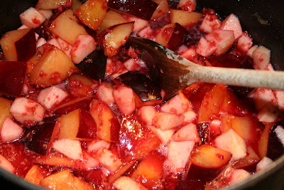 Sweet Melissa Sundays brought Plum Raspberry Preserves, chosen by Margo of Effort to Deliciousness, and was a breeze to assemble and using Granny Smith apples for natural pectin was a nice change of pace. I stuck to the recipe because raspberries, plums, and apples cooked down has a delicious sweet, tart flavor. I did cut my sugar down by 1/2.